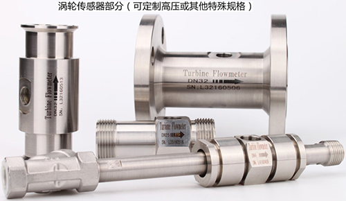 涡轮流量计的转速通过装在机壳外的传感线圈来检测。当涡轮流量计叶片切割由壳体内永久磁钢产生的磁力线时,就会引起传感线圈中的磁通变化。传感线圈将检测到的磁通周期变化信号送入前置放大器,对信号进行放大、整形,产生与流速成正比的脉冲信号,送入单位换算与流量积算电路得到并显示累积流量值;同时亦将脉冲信号送入频率电流转换电路,将脉冲信号转换成模拟电流量,进而指示瞬时流量值。
