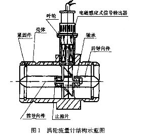 ①法兰夹装式桃色在线视频:涡轮流量计是一种流量测量仪表,流动流体的动力驱使涡轮叶片旋转,其旋转速度与体积流量近似成比例(线性关系)。信号输出方式包括脉冲、模拟量或数字通信方式。结构原理见图1。