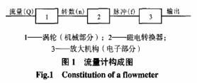 流量计通常由涡轮(机械部分)、磁电转换器、放大机构(电子部分)等组成。