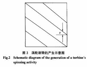 如图2所示,由于涡轮对流体是作相对运动,如果涡轮旋转的圆周速度V=w·r与轴线平行的流速与叶片的夹角为θ,流通面积为A,则介质流速V=Q/A,则推动涡轮旋转的力矩M可用下式表示: