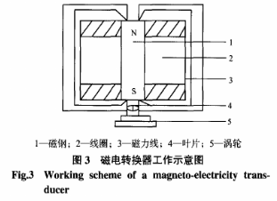 由(3)式可知,当dω/dt为零时,涡轮以角速度ω作匀速转动;当流量发生变化时,dω/dt≠0,涡轮将作加速旋转运动,经过一段时间后,随着流量的稳定,涡轮又会达到新的力矩平衡状态,即dω/dt又等于零值。就是说,涡轮将以另一新的角速度匀速旋转,以适应新的流量,并出现了新的稳定状态。