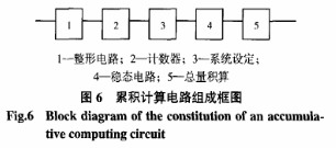 由公式(6)可知,当电源电压E和电容量C为常数时,电流I与输入脉冲的频率f成正比,当更改外围电路(或集成内部)储存电荷的电容C(1~n)参数或连接方式以及改变电路数据时,就可以得到不同介质的流量测量范围。在有些流量计结构中,为了便于检查指示仪表是否工作正常,在放大器输入端设置有自检电路装置。它将振荡器产生的恒定频率脉冲信号送入后置电路,实现自动检测工作正常与否的目的。4.2 总量积算