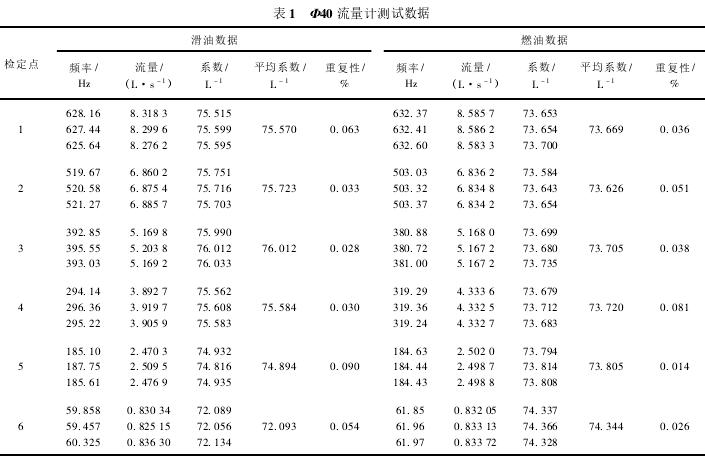Φ40流量计测试数据如表1所示。