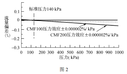 当流量较大时, 工艺温度变化对流量测量准确度的影响不是很大。就CMF200型来说, 在额定流量时, 每变化1 度才影响准确度±0.0001 %。但流量较小时, 工艺温度对准确度的