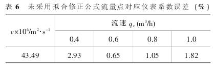 如果直接采用各个流量点的仪表系数取平均值得仪表系数为1610.68,表3为未采用拟合修正公式流量点对应仪表系数误差。
