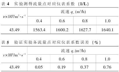 实验中每个流量点均进行3次测量,(j=1,2,3),3次测量的平均仪表系数作为此流量点的仪表系数Ki(i=1,2,3,4,5),各流量点仪表系数*小值与*大值的平均值,作为传感器的仪表系数。
