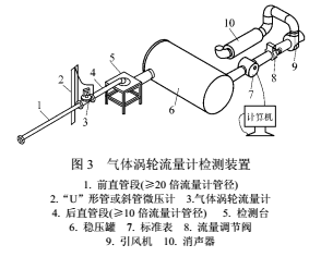 被测流量计安装在测量段中,前直管段长度大于20倍被测气体流量计管径,后直管段长度大于10倍流量计管径,“U”形管或斜管微压计连接在被测流量计的入口和出口处,用于测量流量计的压力损失。标准表为罗茨气体表,精度0.5级,用于计量流经被测流量计的气体流量。标准表与计算机连接,由计算机进行实时监控,输出瞬时流量,并显示累计流量值。引风机用于产生管道气体流量,通过阀门调节流量大小,引风机出口端安装有消声器以降低噪声。