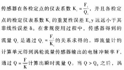 对于重复性很好而线性度较差的涡轮流量传感器,要扩大其测量范围或减小测量误差,研究的核心问题是设计一-种便捷的使用方法,按照行鉴定规程利用原有检定数据,使涡轮流量传感器在具有很小重复性误差的流量范围内,都能得到很准确测量效果。