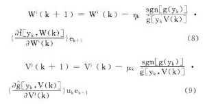 未知, 但其符号已知, 可用sgn[g (yk) ]代替g (yk) , 这样就可以得到调整W (k) 和V (k) 的学习规则为