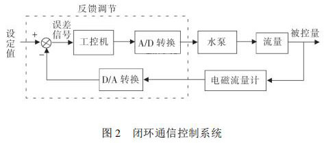 通信控制系统由工控机、变频器、水泵、数据采集卡、消防桃色成人在线视频等组成。在整个热量表耐久性试验装置中,消防桃色成人在线视频与被试验热量表串联在试验管路中。系统设定流量值 qs,通过工控机发送信号给变频器,来控制水泵运转,系统通过研华数据采集卡 PCI1711 将采集到的消防桃色成人在线视频当前瞬时流量值反馈给工控机,工控机将返回流量值与设定流量值qs进行比较,从而确定是否需要重新调整变频器频率控制水泵转速。此过程是一个完整的闭环 PID 控制过程,其闭环控制过程如图 2 所示。 2. 2 管路切换系统管路切换主要由冷热水箱、水泵、开关阀等组成。要实现热量表耐久性 4000 次冷热冲击试验,需要实时控制管路中热水与冷水的交替使用。