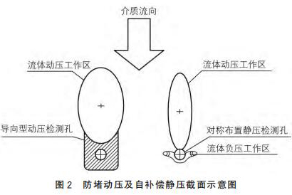 新甲苯计量表采用抛物面导向型结构作为动压测点,采用对称自补偿型式的静压测点,可以有效地解决来流方向偏流时信号的稳定采集,来流偏离管道轴线时,可以维持输出差压基本不变,如图2所示。