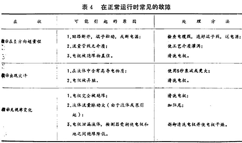 在仪表指示不正常时,可根据下面介绍的一些典型故障和处理方法进行必要的处理。这些故障可分为启动时易产生的故障,正常运行时出现的故障和接地不良引起的故障(见表3、表4)。