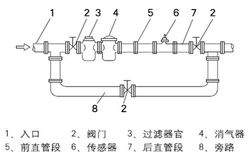 d.若流体含杂质,则应在传感器上游侧装过滤器对于不能停流的.应并联安装两套过滤器轮流清除杂质。