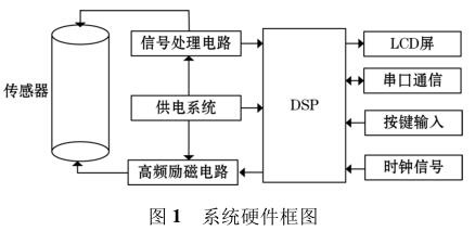 高频励磁自来桃色成人在线视频由传感器、高频励磁电路、信号处理电路等组成,其中高频励磁电路决定着传感器磁场的强弱,励磁电路的稳定性以及精确性决定着系统检测的准确性以及稳定性。DSP 系统控制励磁电路激励传感器线圈,当线圈中有导电液体流过时,其切割磁感线并在传感器两端的线圈上产生感应电动势,利用信号检测电路监测感应电动势的大小,*后根据相应关系计算出液体的流量,系统硬件框图如图 1 所示。