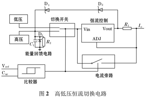 高频励磁电路主要由高低压切换恒流控制电路和H 桥励磁开关电路组成。其中高低压切换恒流控制电路确保高压或低压情况,都可以通过 H 桥向励磁线圈提供恒定的电流。电路原理图如图 2所示。