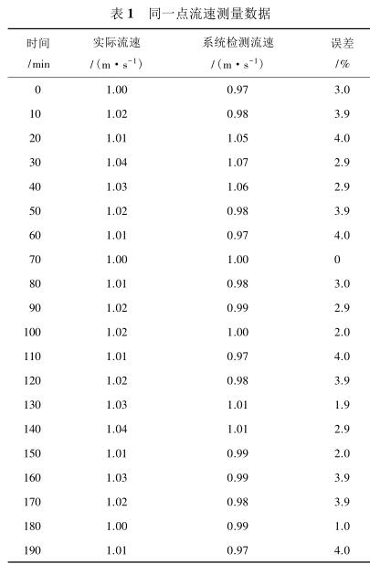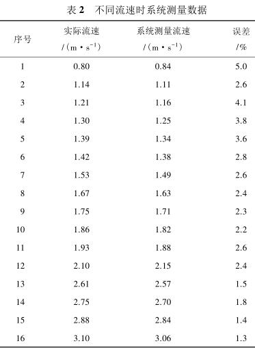 由表 2 测量数据可知,系统在测量低流速液体时(流速小于 1 m/s)误差较大,达到 5%,当待测液体的流速增大时(大于 1.4 m/s),误差逐渐减小,基本维持在 3%以内。由此可见系统具有较高的检测精度,尤其是当管道中的液体流速较高时,系统的检测误差不超过 3%,达到了设计预期。