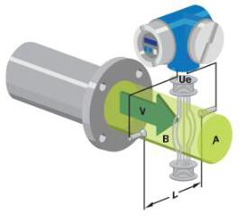 基本上,当导电液体流过磁场时,会感应出电压。为了测量该产生的电压(与流动的液体的速度成正比),使用了两个彼此相对安装的不锈钢电*。