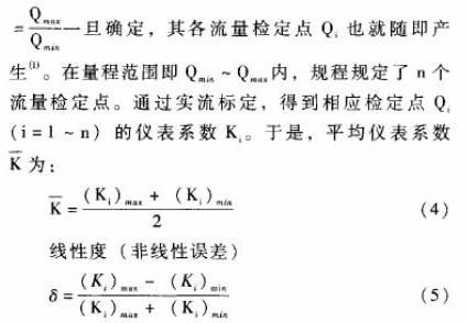 在QQmax,即在测量范围之外误差将超过δmax。这就是说虽然涡轮流量传感器具有很好的重复性,但是由于电脉冲信号频率F与体积流量Q之间是非线性的,按照常规的平均仪表系数`K的计算方法,对于一定的误差限士A,由于非线性误差的存在使得涡轮流量传感器的工作范围只能限定在Qmin~Qmax之内。