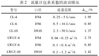 其中,0.75<K<1.2。在此基础上,每次试验过程中,根据流量计的流量范围,选取9个流量点,每个流量点校准3次。流量计的铭*信息及直管段口径选择详见表1。