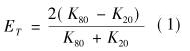 式中:K80为某流量点80℃下仪表系数,L-1;K20为某流量点20℃下仪表系数,L-1。