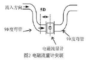 (2)直管段保证在前5D后3D为获得仪表测量精确度,在传感器上游侧的直管段长度不小于5D,下游侧不小于3D(D为传感器的名义直径)。若在传感器上游侧有两个以上的弯头或其它阻流件,则前置直管段应大于10D。