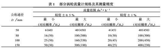 由此可见,用涡轮流量计测量水泵流量,需测量频率f。从表1中可见,涡轮流量计的频率(精度范围内)在20Hz到500Hz之间。